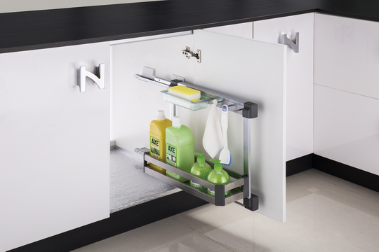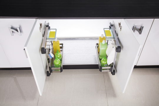 拉斯ST平板緩衝水槽籃(左右通用) 型號 規格mm (W * D * H) 適用櫃距mm 地櫃層數 建議售價 OC12004 215 * 460 * 450 250 2層 NT$ 5,500 ※籃子承載重量: 5KG