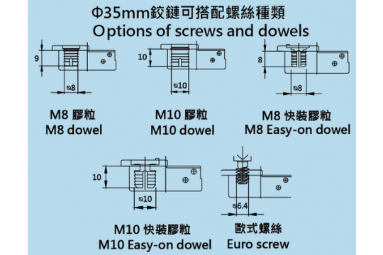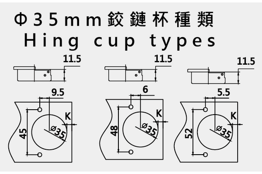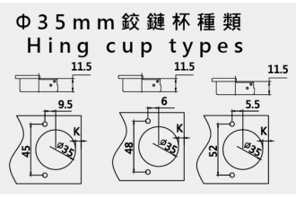 鉸杯直徑 Diameter of hinge cup: 35毫米/mm